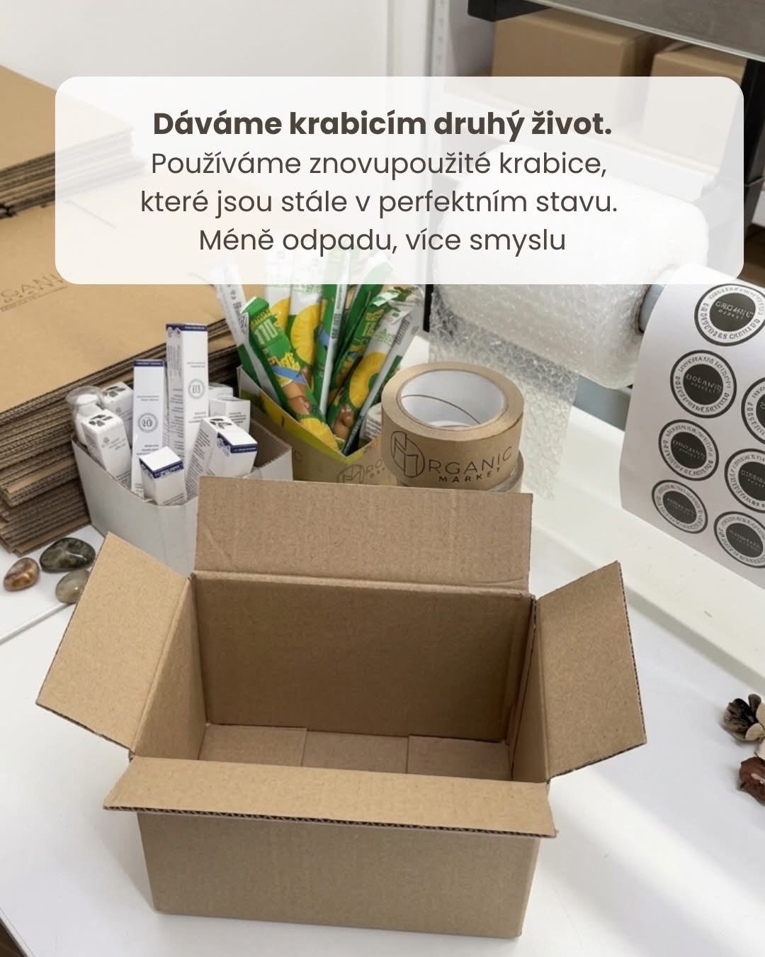 Tip pro vás: Až vám dorazí balíček z Organic Marketu, zkuste krabici nebo výplň využít ještě jednou i vy – třeba při stěhování, posílání dárků nebo jako kreativní materiál pro děti.