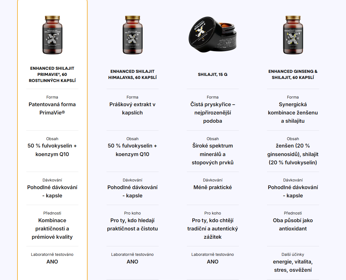 - S adaptogeny - kombinace shilajitu s adaptogeny vytváří velice funkční bohatý základ.