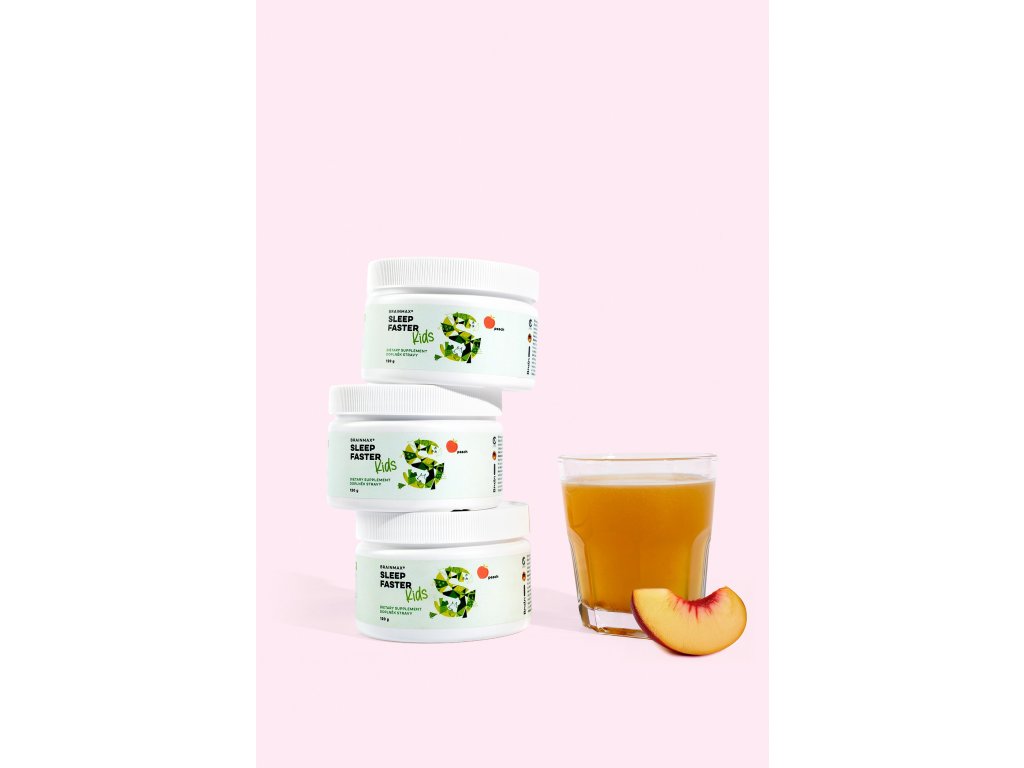 Děti rostou, učí se a objevují svět. A kvalitní spánek je přitom jejich superpalivo. BrainMax KIDS Sleep Faster je lahodný broskvový nápoj, který díky kombinaci hořčíku MagChel®, aktivního vitamínu B6, heřmánku, inositolu, glycinu a višňové šťávy pomůže dětem k relaxaci1, odpočinku1 a zdravému spánku1. Bez umělých barviv a s jemnou chutí, na kterou se budou těšit každý večer.