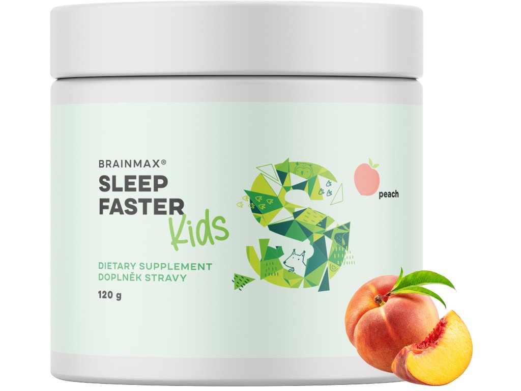 BrainMax KIDS Sleep Faster je nápoj s pečlivě vybranými látkami vhodnými pro večerní rutinu dětí. Obsahuje dobře vstřebatelný hořčík bisglycinát MagChel®, aktivní formu vitamínu B6, heřmánek podporující duševní pohodu, relaxaci a zdravý spánek, dále inositol s glycinem a višňovou šťávu, která je přirozeným zdrojem melatoninu. Díky jemné broskvové chuti a složení bez umělých barviv si děti nápoj snadno oblíbí.