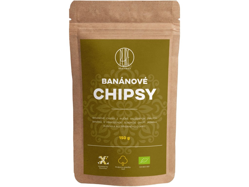 BrainMax Pure Banánové Chipsy BIO, 150 g, EXPIRACE 10/25