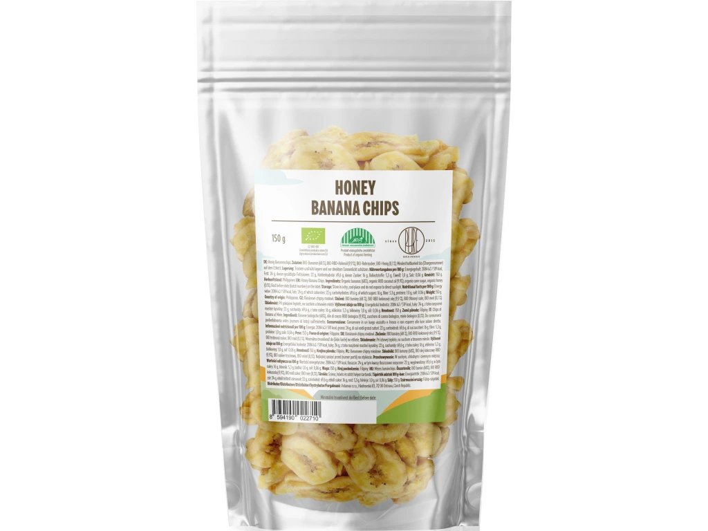 BrainMax Pure BIO Banánové chipsy s medem jsou vyrobeny z pečlivě vybraných, ručně sklízených banánů pěstovaných na Filipínách. Díky přirozeně sladké chuti banánů a přidanému BIO medu mají chipsy jemnou, příjemně sladkou chuť. Jsou sušeny a smaženy šetrným způsobem, aby si zachovaly křupavou texturu.