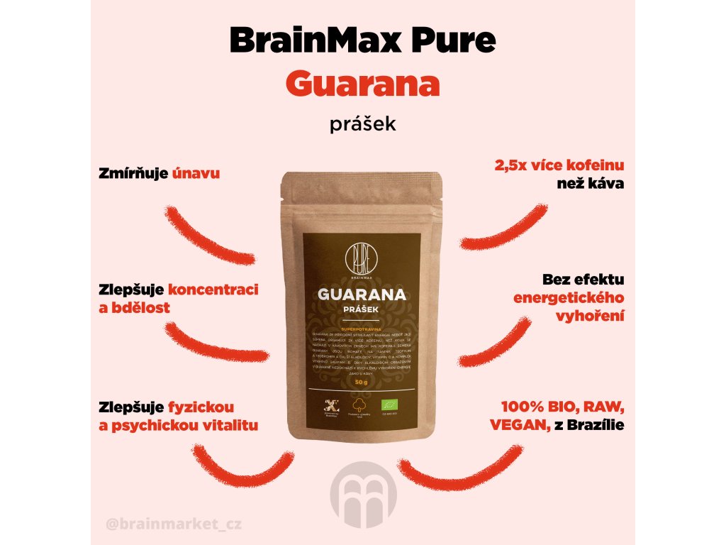 Přednosti BrainMax Pure Guarana BIO prášku: