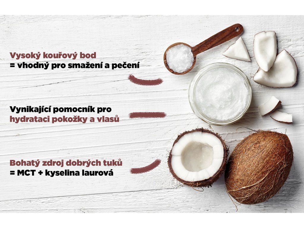 - Panenský kokosový olej za studena lisovaný při nízkých teplotách.