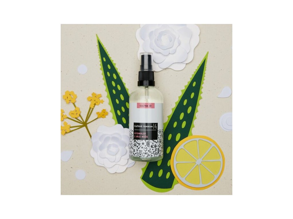 Čisticí hydratační pleťové tonikum Caltha s bílou růží neobsahuje alkohol ani parfemaci. BIO HYDROLÁT Z BÍLÉ RŮŽE je výtažek získaný destilací květů bílé růže a právem je označován jako „královna květových vod“. Blahodárně působí na všechny typy pleti, velmi vhodný je pro pleť zralou a unavenou. Ulevuje unavené pokožce a obnovuje vláčnost pleti, je známa pro své zvlhčující a změkčující schopnosti, pleť osvěží a rozzáří. Hydrolát z bílé růže reguluje zarudnutí pokožky a má i regenerační a protizánětlivé účinky, vhodný je tedy i pro aknózní pleť. Přírodní jemná vůně bílé růže je pro svou nevtíravost a podmanivost využívána hojně v arometerapii. Vůně zklidňuje a harmonizuje, ulevuje při bolestech hlavy, při stresu a napětí.
