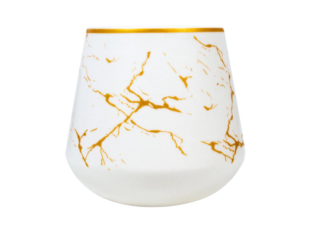 "Aurora" - bílá keramická tykev s nepravidelnými zlatými vzory. Elegance, minimalismus a luxusní vzhled v jednom. Dokonalá volba pro milovníky stylových doplňků yerba maté!