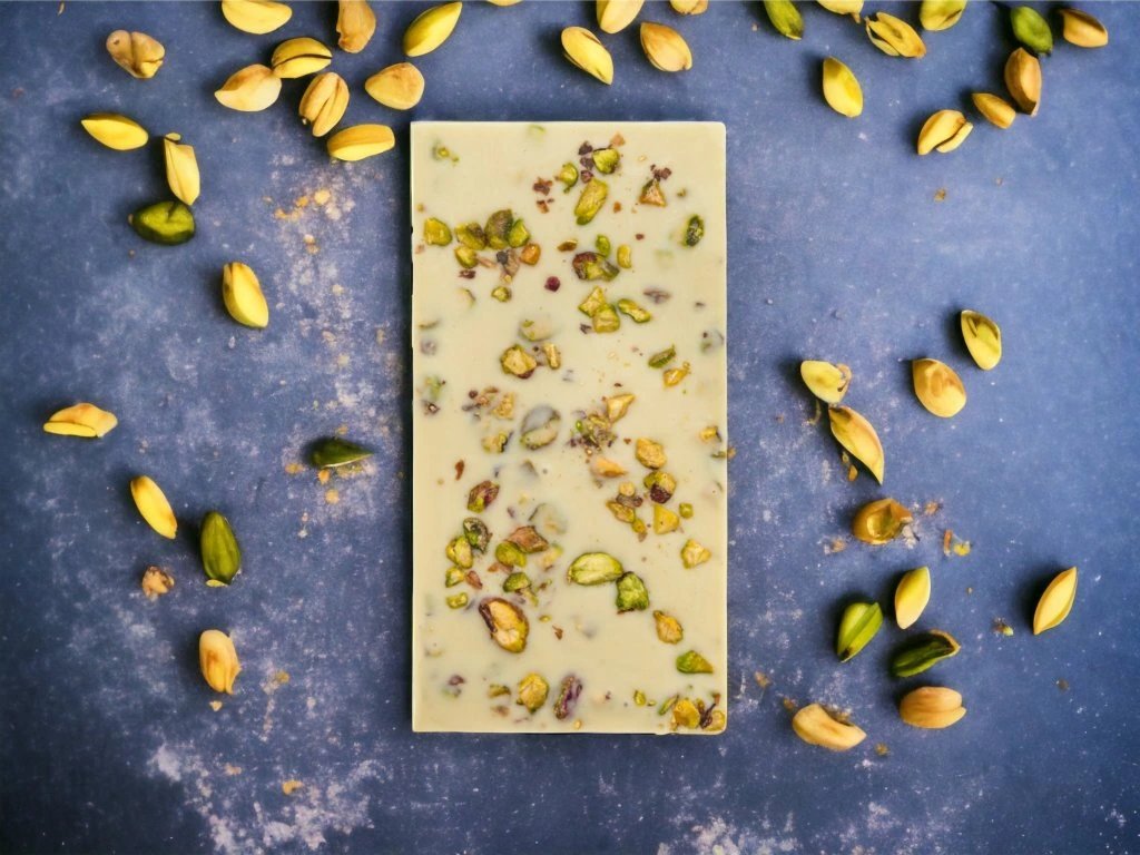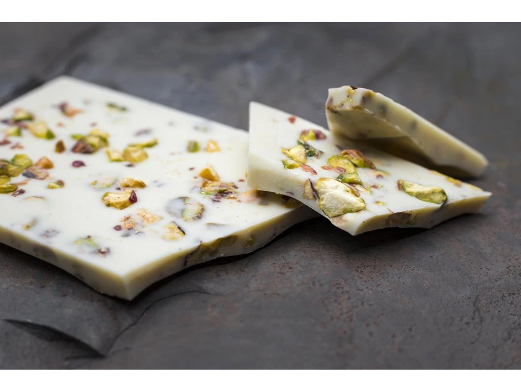 MoonChocolate - ATLAS - bílá čokoláda s pistáciemi a 44% obsahem kakaového másla