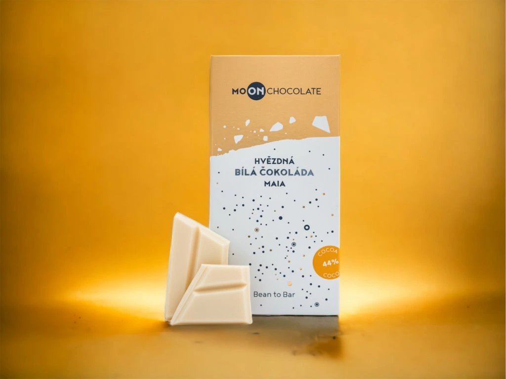 MAIA je čistě bílá čokoláda z české čokoládovny MoonChocolate s 44% obsahem kakaového másla.