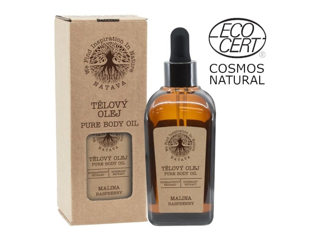 Certifikované tělové oleje NATAVA poskytují pokožce nejen potřebnou ochranu, hydrataci, zároveň mají velkou schopnost vyživovat do hloubky a dodávat potřebné vitamíny a minerály. Malinový olej je vhodný pro suchou a namáhanou pokožku, snadno se vstřebává a nezanechává mastný film. Pomáhá pleť hydratovat a regenerovat zejména po dlouhodobém pobytu na slunci. Přispívá k fyziologické obnově pokožky především při vysoké námaze a v péči o problematickou pokožku.