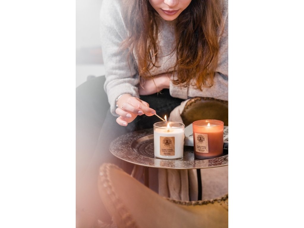 Vonné svíčky dokreslí kouzlo dané chvíle k Vaší momentální náladě a umožní navodit tu správnou atmosféru. Budou Vám dělat společnost v jakékoliv situaci, stačí si jen vybrat, škrtnout sirkou a užívat si oblíbenou vůni a chvíle pohody. Svíčky ze sójového vosku v elegantním skle mají dřevěný knot, který zajišťuje rovnoměrné rozpouštění vrstvy vosku a rozptýlení vůně po celé místnosti. Knot vytváří krásný tančící plamen a svým praskáním navozuje velmi příjemnou atmosféru. Aroma svíčkám dodávají pečlivě vybrané parfémy.