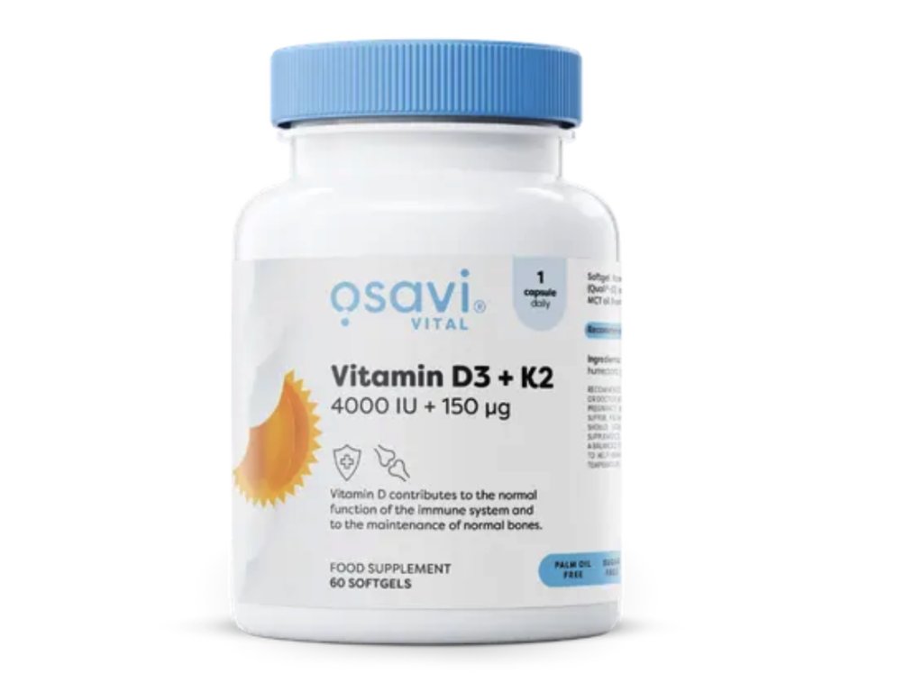 Osavi - Vitamin D3 + K2, 4000 IU + 150 mcg, 60 softgel kapslí