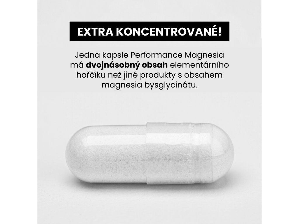 Performance magnézium® je vysoce-koncentrovaná forma magnézia s vysokou vstřebatelností, která pomáhá už při užívání 1 kapsle denně.