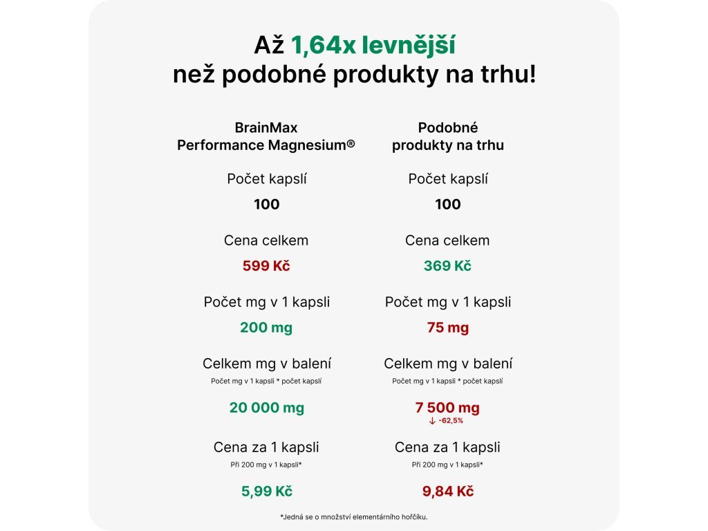 Při přepočtu hořčíku (účinné látky) vychází naše magnésium až 1,64x levněji než je průměr na trhu u podobných produktů