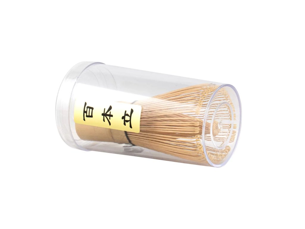 Sada příslušenství pro přípravu čaje matcha obsahuje bambusovou metlu na napěnění čaje (chasen), lopatku (chashaku) a čajovou lžičku.