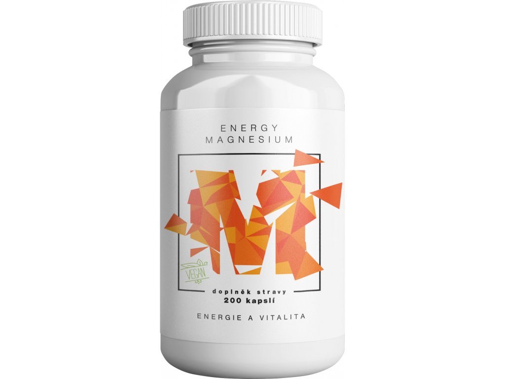 Energy Magnesium® obsahuje v jedné kapsli 1.000 mg vysoce vstřebatelného magnézia malátu ALBION®. Jedná se o speciální koncentrovanou formu hořčíku malátu, která obsahuje 200 mg elementárního hořčíku (53% DDD) v jedné kapsli. 2 kapslemi doplníte denní dávku hořčíku a při vyšších dávkách nepůsobí projímavě. Tento hořčík se vyrábí v Americe u jednoho z nejlepších výrobců organických minerálů na světě firmy ALBION. Kombinace hořčíku a kyseliny jablečné sebou přináší nejen velmi vysokou využitelnost pro tělo, ale hlavně energizující účinek, neboť kyselina jablečná se přímo podílí na tvorbě energie v našich buňkách. Energy Magnesium® příspívá ke snížení únavy, vyčerpání, k normální činnosti svalů, nervové soustavy a psychiky. Energy Magnesium® pro vás vyrábíme již 5 let. Neobsahuje žádné balastní látky (éčka). Kapsle jsou rostlinné a produkt je vhodný pro vegany.
