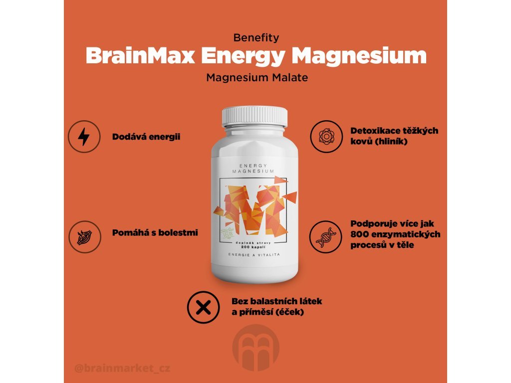 BrainMax Energy Magnesium, 1000 mg, 200 kapslí (Magnesium Malate -